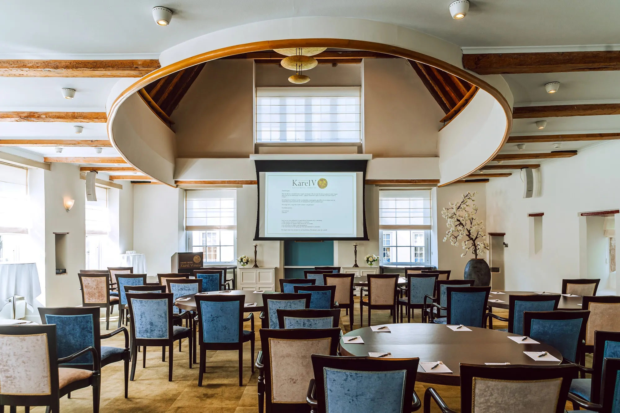 De Graaf van Leicester zaal is een lichte, ruime zaal die perfect geschikt is voor grote gezelschappen. Dankzij de flexibele indeling is de ruimte geschikt voor zowel zakelijke evenementen als sfeervolle diners en borrels.